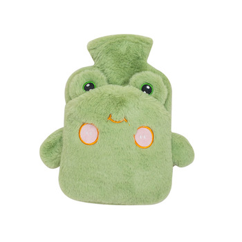 Nuevo diseño de dibujos animados de piel sintética cubierta de goma botella de agua caliente de felpa llena de agua bolsa de agua caliente